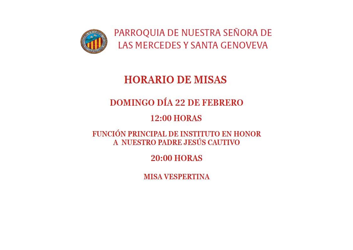 Horario Misas Domingo 22 de febrero